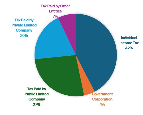 IRD Keeps track of all the forms of taxes including individual income taxes, VAT, etc. in its databases and publish the summary of taxes collected, budget target, achievement % based on budgeted target and many more aspects in part of strengthening taxing policies and system in place. In its latest publication of annual progress report for fiscal year 2079/80, the report demonstrated and compared the income taxes paid by the taxpayers in different headings which are listed below for your understanding. The report clearly shows the huge contribution of individual taxpayers in part of collecting government funds as compared to other institutions, companies, corporations and government agencies (Fy 2079/80 shows 34.64% of total taxes collected are received from individual taxpayers either engaged in proprietorship business, employment, stock trading, sale of land assets, etc. in personal capacity).